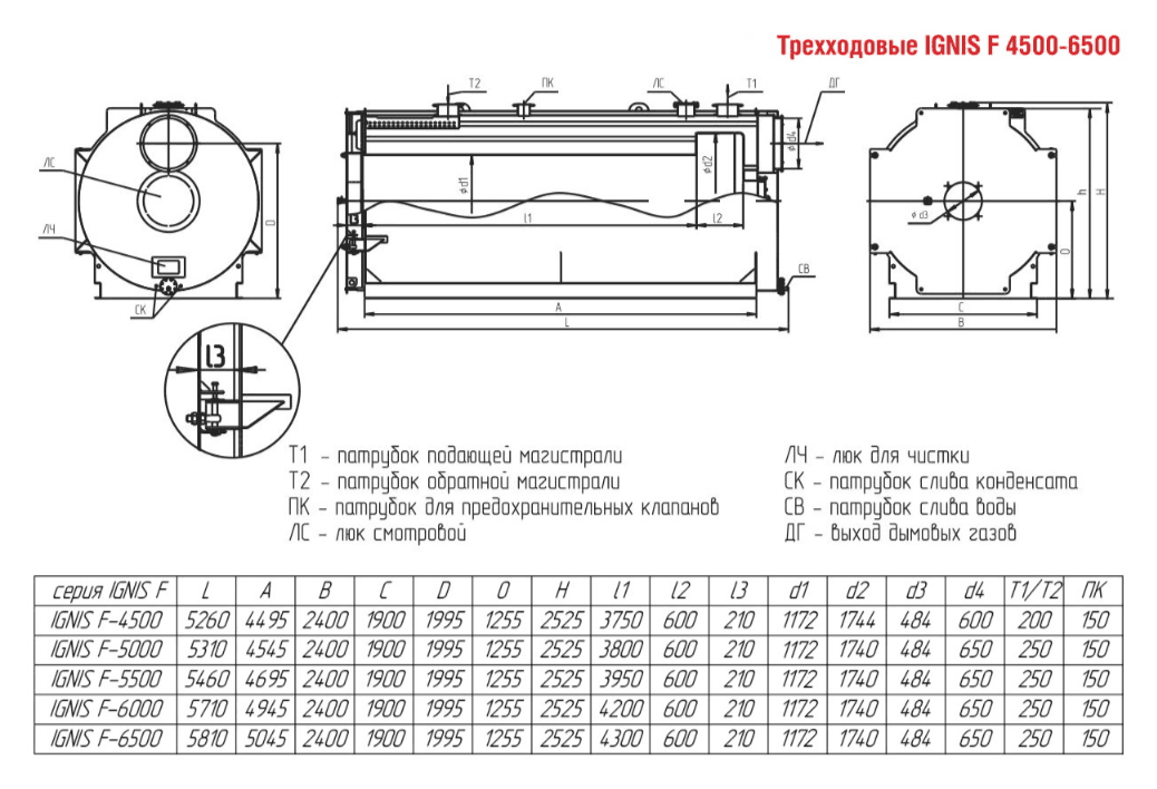 Технические характеристики водогрейного трёхходового котла ARCUS IGNIS F-5000