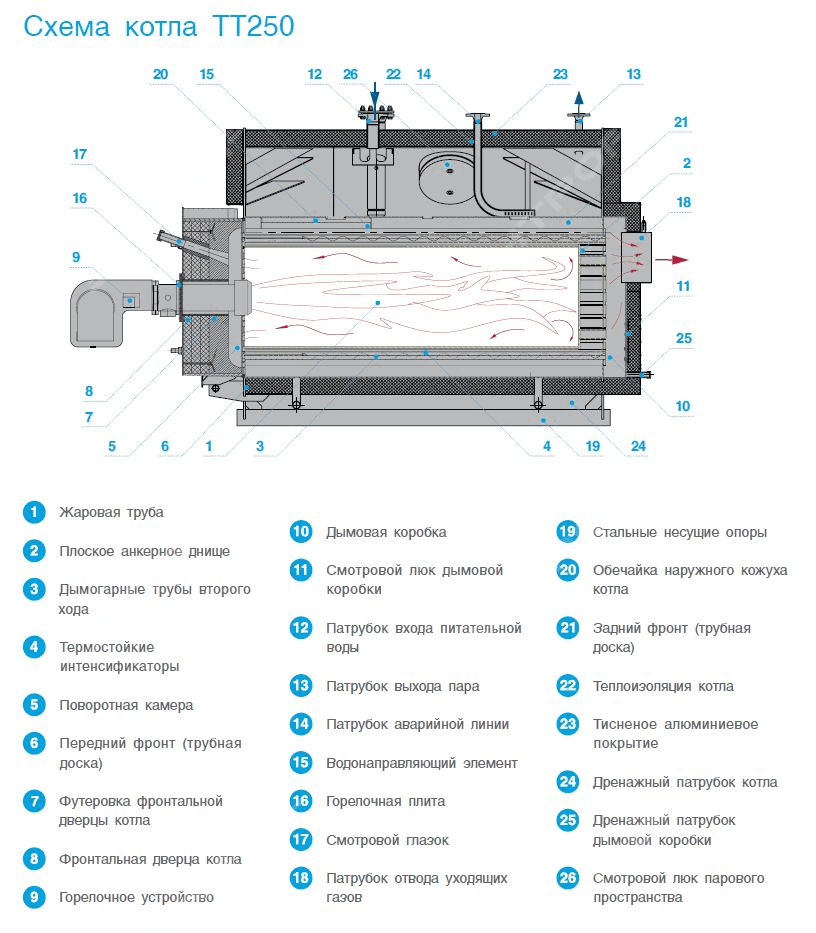 Краткое описание парового двухходового котла ТЕРМОТЕХНИК ТТ250 - 8 бар
